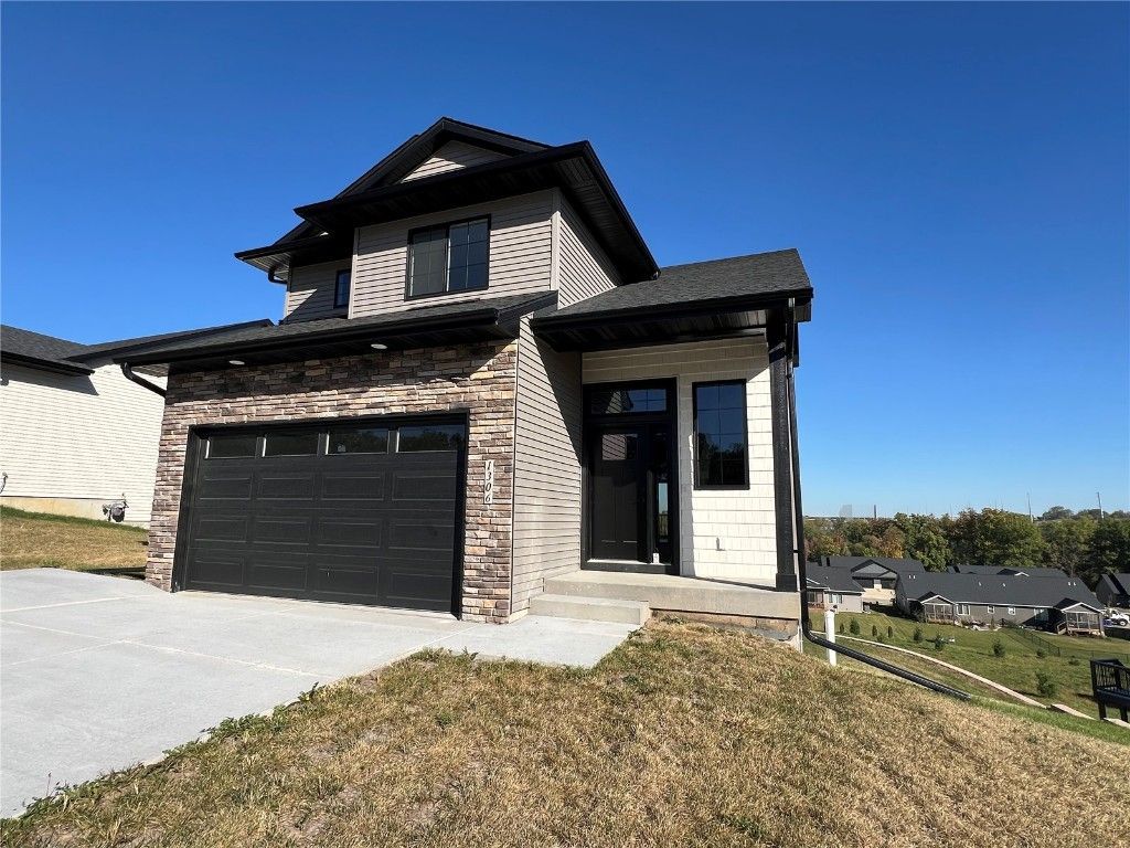 IMMEDIATE POSSESSION AVAILABLE! New two-story floor plan with a finished lower level. 9' ceilings on the main level. Built-ins around the gas fireplace in the great room. Covered deck off of the dining area. Kitchen has hard surface counter tops, white perimeter cabinets with gray island, pantry, stainless steel appliances and is plumbed for a gas range. White doors and trim throughout. Bathrooms have gray cabinets. Upper level features 3 bedrooms and the laundry room. Primary bedroom has a walk-in closet and a private bathroom with dual sinks and a shower door installed on the shower. 2nd bathroom upstairs also has dual sinks. Finished walkout lower level has a rec. room that leads out to the patio, 4th bedroom and bathroom. Madden Addition features a paved walking trail and pedestrian bridge that connects to the Clear Creek Trail System and Coralville!