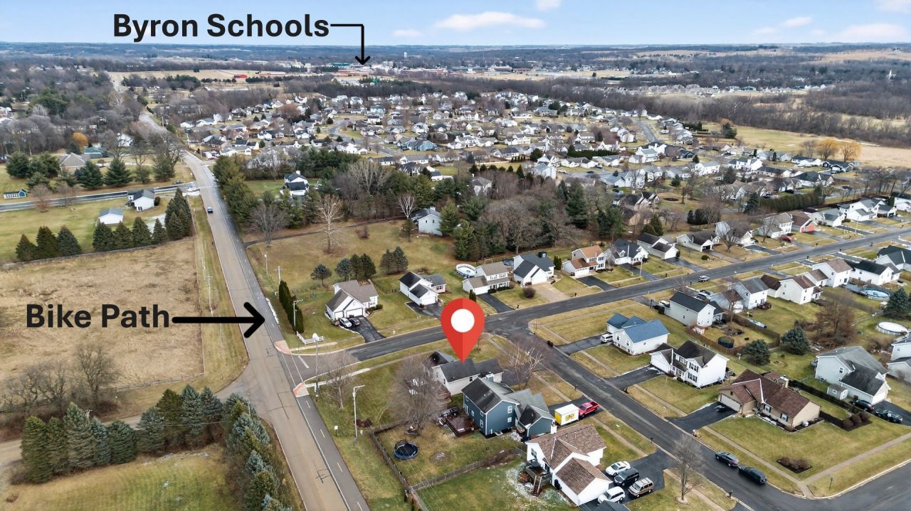 Welcome to a home that perfectly balances modern style with everyday functionality. Situated in a sought-after subdivision within the top-rated Byron School District, this 4-bedroom, 2-bathrooms residence is designed to impress and offer comfortable living. Upon entry, you'll be greeted with new flooring and an abundance of natural light creating a warm and welcoming tone. The open concept design allows for effortless flow between the living area, kitchen, and dining space. The kitchen is thoughtfully designed with granite countertops, a tile backsplash, and ample cabinetry and workspace. The upper-level features two bedrooms and the primary suite with a shared ensuite bathroom. On the lower level, the family room centers around an impressive floor-to-ceiling stone gas fireplace, creating a cozy and warm gathering place. This level also includes the 4th bedroom and a full bathroom equipped with a jacuzzi style tub and shower offering a relaxing retreat. Additional space can be found in the unfinished basement, which includes the laundry area and provides excellent storage options. Outdoors, the spacious backyard features dual decks perfect for hosting get togethers or enjoying quiet evenings. Location is everything here. You are within walking distance of Blackhawk Meadow Park, the bike path, and with Byron's charming downtown and schools just minutes away. If you are looking for space, comfort, and a great community, this one is a must see! Additional features include: Sump Pump (2025), New LVP Flooring, Granite Counters, Updated Bathrooms.