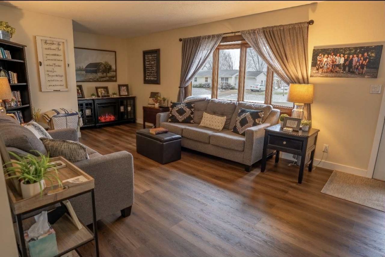 This nicely updated 2 bedroom, 2 bathroom ranch home offers comfortable main level living with thoughtful upgrades throughout. Featuring all new flooring, newer appliances, and a newer water softener with reverse osmosis system. The kitchen is equipped with soft close cabinetry and pull out storage for added convenience. A large rear addition provides extra living space and includes an electric fireplace, perfect for relaxing or entertaining. Additional highlights include an attached one car garage, a partially finished basement with full bathroom and additional storage room, and solar panels which are leased. Furnace & AC 2023.