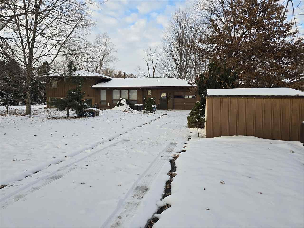 This well-built estate home sets on a beautiful double corner lot surrounded by mature trees offering great space, flexibility, and classic curb appeal with its brick-and-wood exterior. The main level features a bright living room, large kitchen/dining area, and a convenient half bath. A few steps up are three comfortable bedrooms and a full bath. The lower level includes a cozy family room with fireplace, laundry room, and a versatile fourth bedroom with its own outside entrance-perfect for a home office or in-home business. The basement provides even more potential, offering both an unfinished storage/living area and a utility/workbench space. This home is ready for any of your updates and personal touch. Come see this great opportunity in a wonderful community!