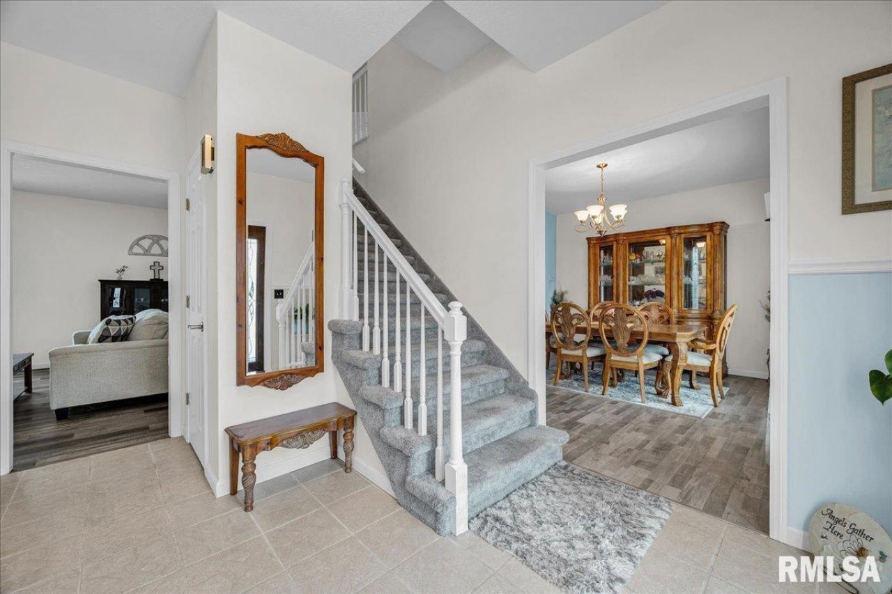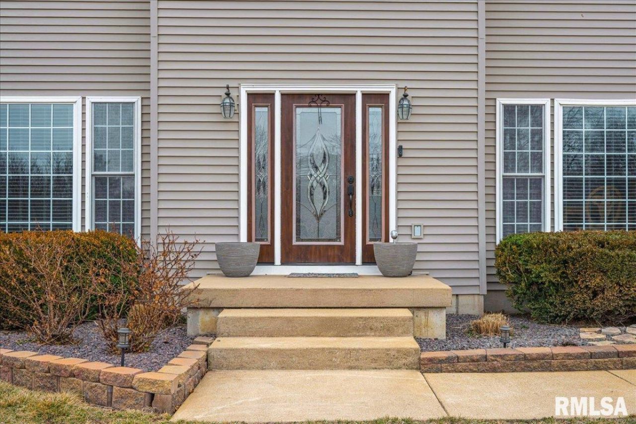 Beautiful Stately home on a large nearly full acre lot in a country subdivision! 5bed 2.5 bath with many updates overlooking a professionally landscaped lawn with a small pond and lighted waterfall, large deck, above ground pool and backing up to the view of corn fields and the sunset. Foyer opens to the formal part of the home with the Dining Room on the right and Living Room on the left. The Living Room expands to the Family room through french doors for entertaining. Fireplace in the entertaining area and doorway to the deck. Eat in kitchen with new appliances and solid surface countertops. Half bath. All new flooring throughout the main. Upstairs has all 5 bedrooms with laundry nearby. Spacious master bedroom with large bath and walk in closet. Jetted tub! 4 additional bedrooms with plenty of space and storage. 2 separate family rooms in the basement could serve as additional bedroom or the perfect place for a pool table. Large unfinished room for additional storage or another bedroom or office could be added. Newer roof and AC. 2 car side load attached garage with extra work space. This home is a must see!
