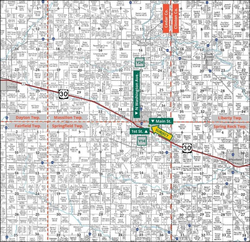 Located within the city limits of Lowden, Iowa, this attractive, timbered lot sits on a hard-surfaced road on the southeast side of town, an ideal spot for a new home, residential neighborhood, or other development opportunity. With water and sewer access points available on both the north and south sides of the property, this site offers convenient access to public utilities. There is a 1,152 square-foot garage that was built in 2001 and an 18' x 11' grain bin that was built in 1960. The property features a mixture of maple, hickory, oak, poplar, and willow trees.
